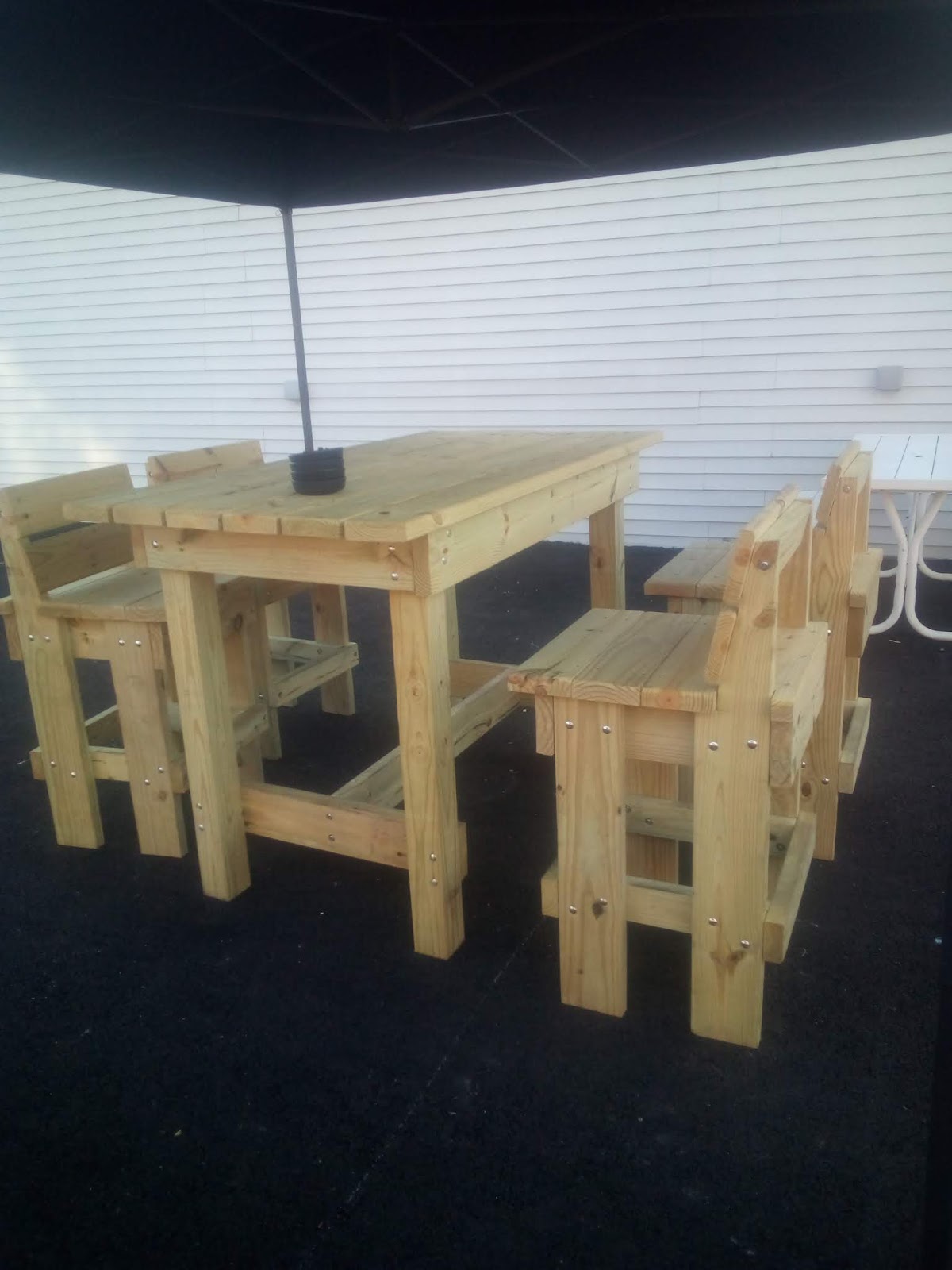 The fence is down and tents and tables are set up. I'm assuming it's a shared space between the two bars.